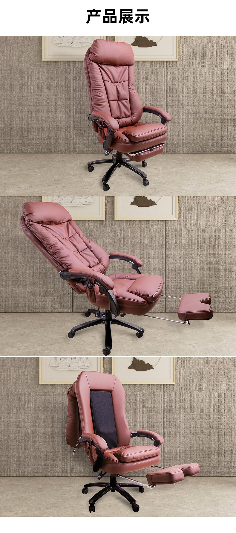 辦公按摩椅頸部:正反轉(zhuǎn)揉捏,上下可調(diào)節(jié)高矮適應(yīng)不同人。