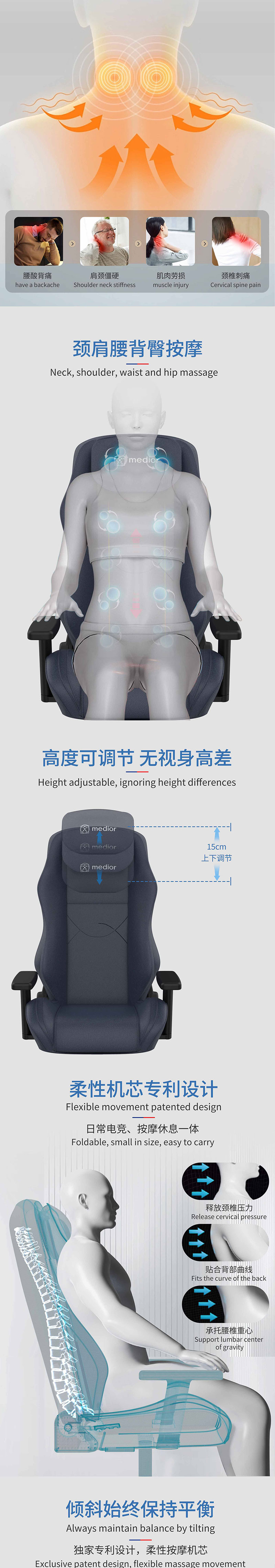 1) 頸部揉捏按摩,上下移動調(diào)節(jié)
